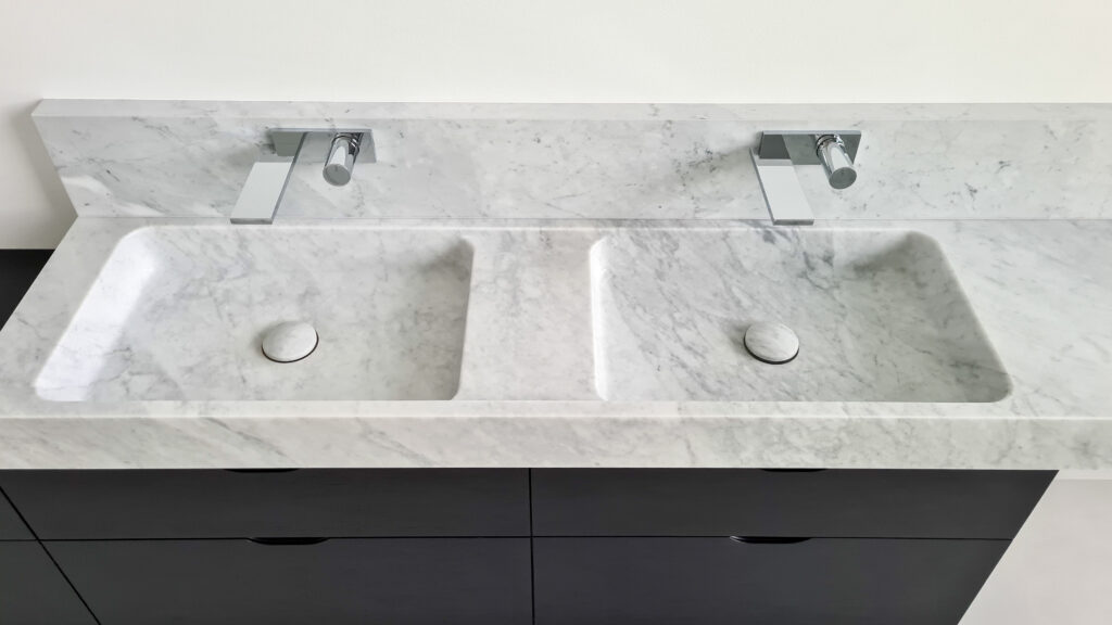 Minimalizm ma swoją logikę: im mniej widocznych urządzeń, tym bardziej eksponujemy naturalne piękno kamienia. Rysunek, struktura, światło odbijające się pod różnym kątem – to wszystko działa najlepiej, gdy otoczenie jest uporządkowane.