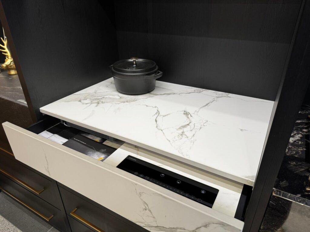 W pracowni MAR-BOB widzimy to na co dzień – klienci oczekują nie tylko piękna, ale też inteligentnych rozwiązań, które nie zakłócają harmonii przestrzeni. Technologia ma być obecna, ale dyskretna. A kamień naturalny, konglomeraty i spieki kwarcowe pozwalają stworzyć kuchnię, w której funkcjonalność wtapia się w estetykę.